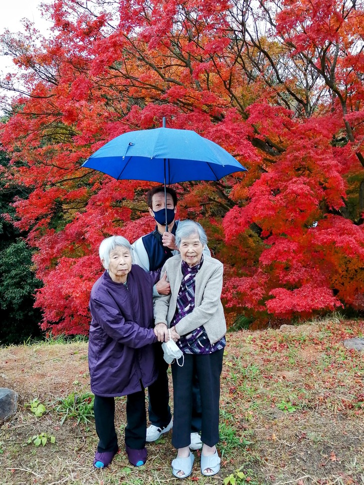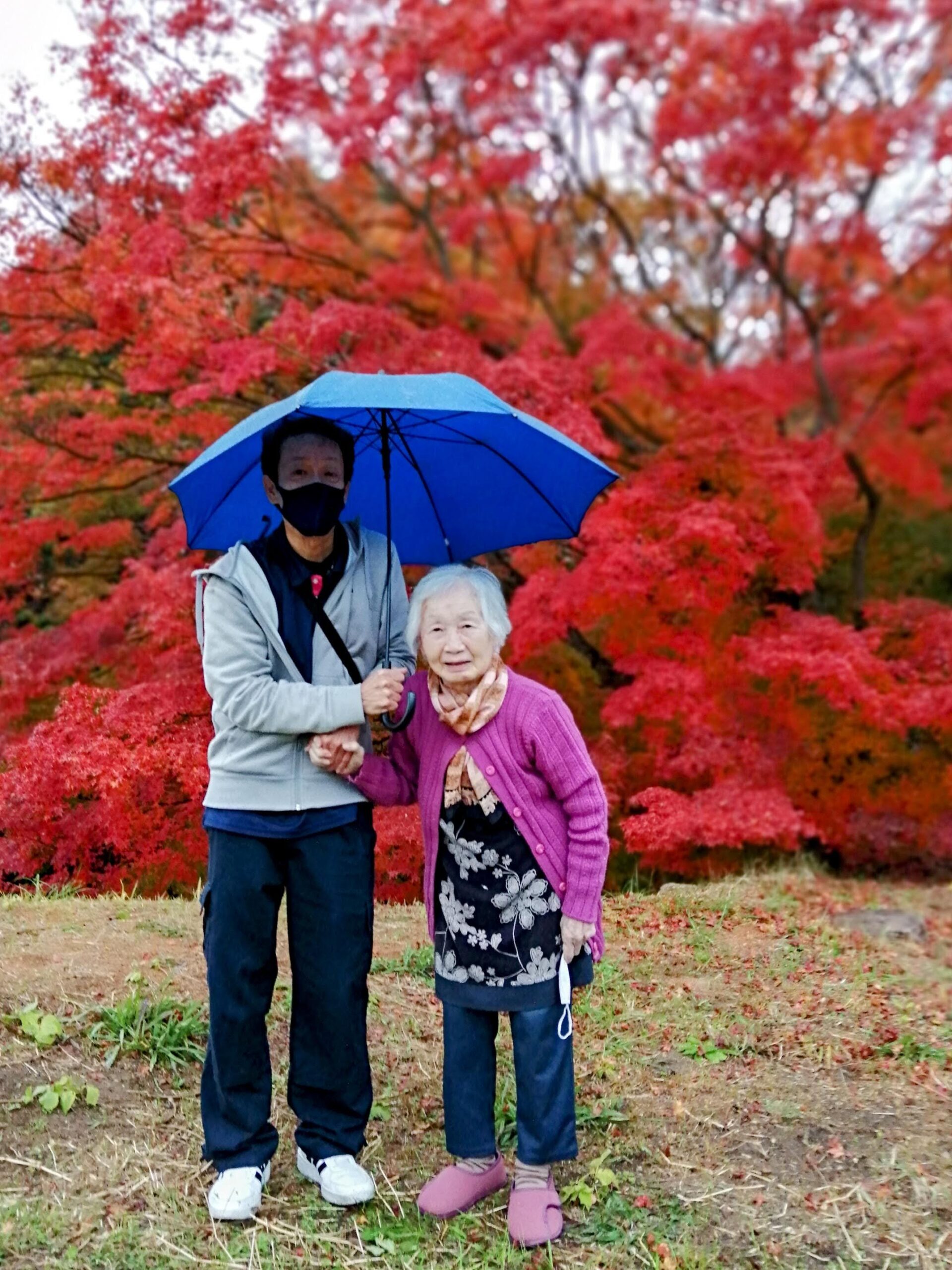 雨の中での紅葉狩りとなりましたが、公園の木々は雨に濡れて一層鮮やかに輝いていました。