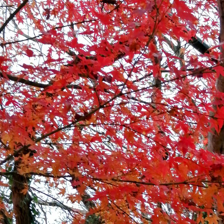 雨の中での紅葉狩りとなりましたが、公園の木々は雨に濡れて一層鮮やかに輝いていました。