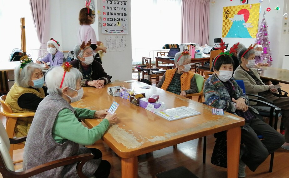 笑顔あふれるクリスマス会 12月25日はクリスマス会。ビンゴ大会の歓声と合唱の歌声に包まれ、笑顔あふれるひとときとなりました。