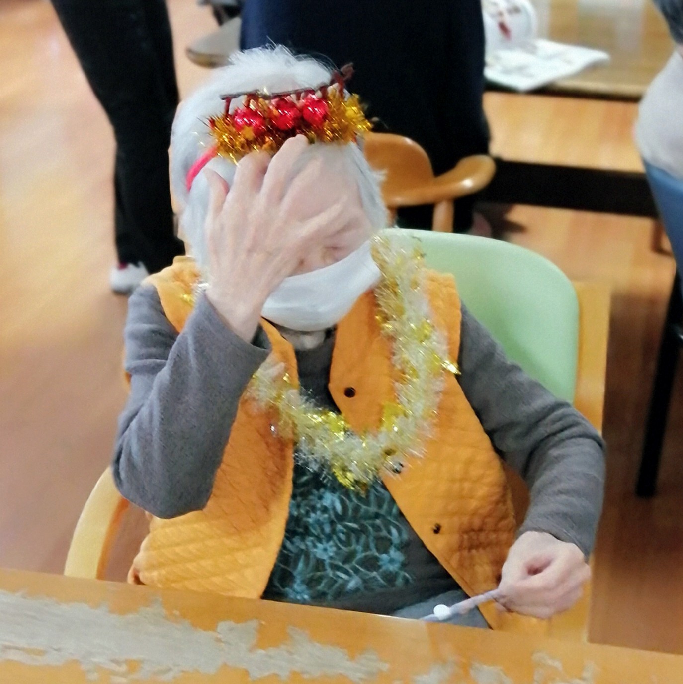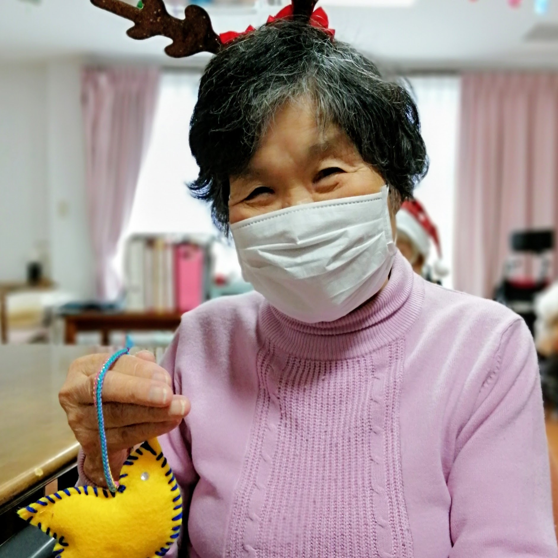 プレゼントは、スタッフが一つひとつ心を込めて作成した手作りのチャームや、温かいメッセージカードをご用意しました。 「自分だけの特別なもの」を手にする喜びは、自尊心の向上にも繋がります。皆様、手作りの温かみに大変喜んでくださり、お互いに見せ合いながら会話が弾むなど、社会的な交流の場としても大変有意義な時間となりました。