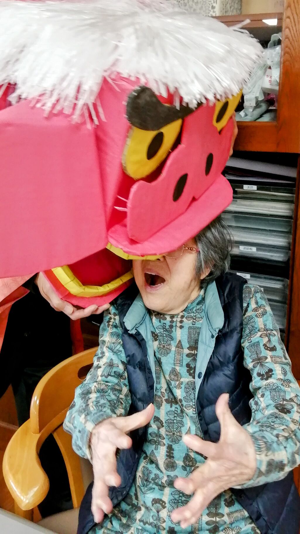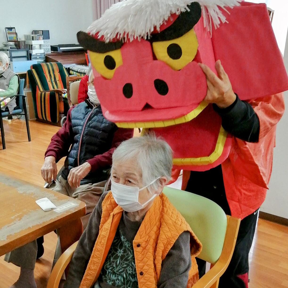 真っ赤な顔が勇ましい「獅子舞」が登場!
