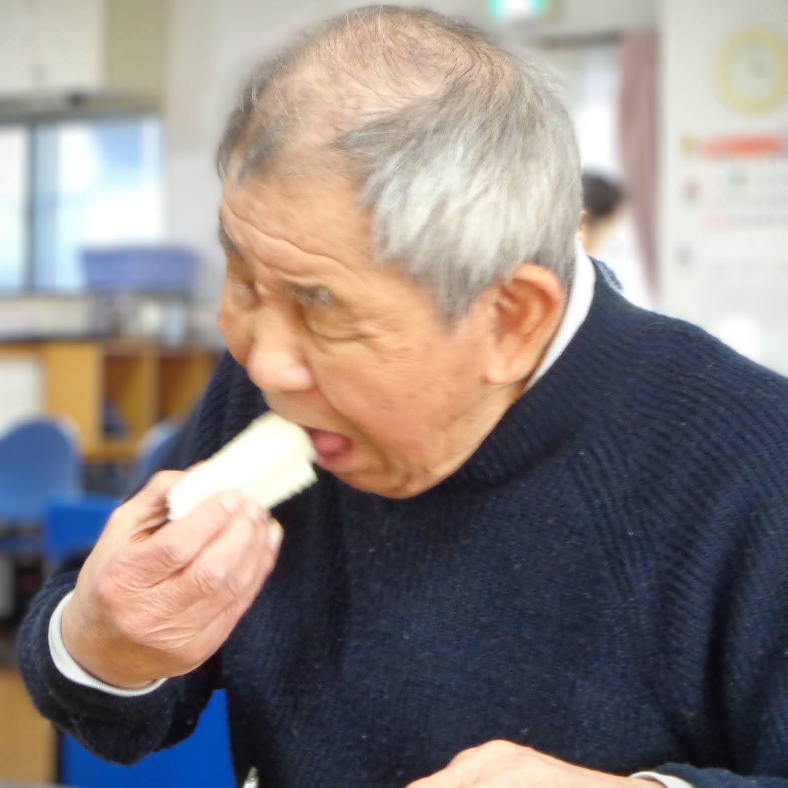 「恵方巻き風スイーツ」作り 海苔の代わりに食パンを使い、たっぷりのあんことホイップクリームをのせて、皆様ご自身で丁寧に「くるくる」と巻いていただきました。